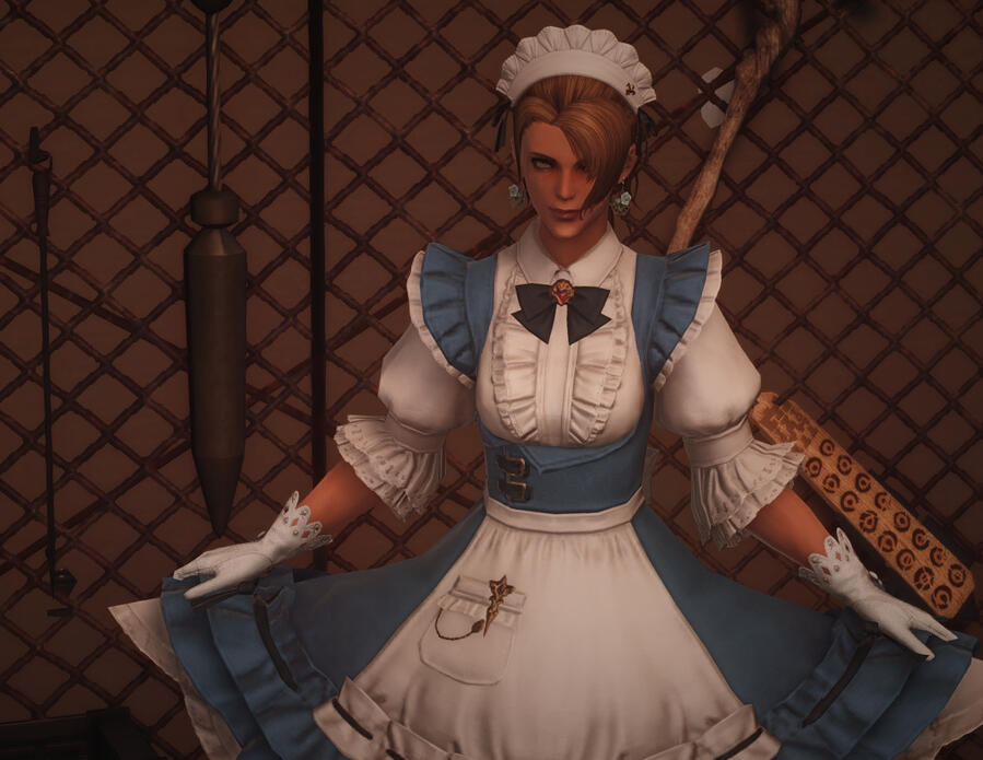 Blondine Hayward is the house's head maid. She is primarily in charge of coordinating the other behind-the-scenes staff that clean up after 'business' is conducted. Whether that is after the doors close for the evening, or close temporarily with a client, it doesn't matter.Blondine's specialty is handling the house equipment. Cleaning all the toys, implements, objects, and other random sexual things that are played with is something she enjoys and takes a lot of pride in.