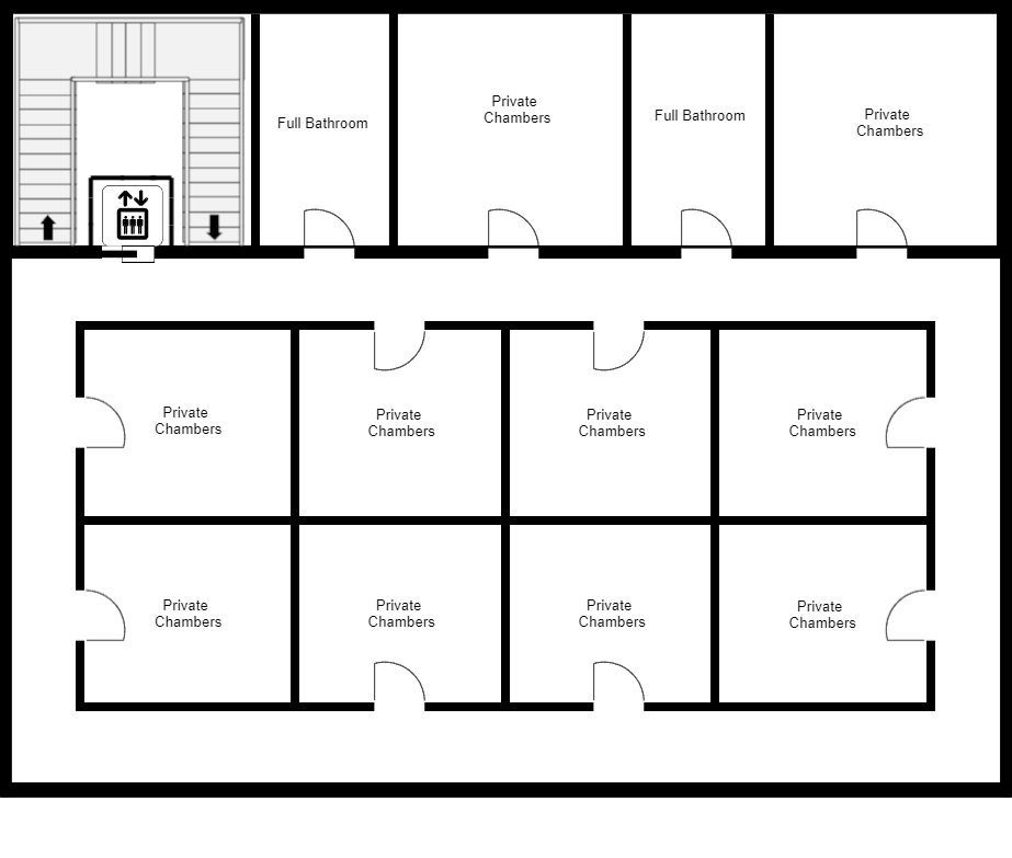 Under the Moonlight's physical building layout changes frequently in the main public space. So much so that it's difficult to discern a specific floorplan for it. However, the behind-the-scenes areas and private chambers remain the same.But if you're curious of the rest of the building's functionality, it's very similar to a hotel. If clients happen to need to spend the night, the back end staff are on hand to make sure they have what they need to be comfortable.Each floor is equipped with at least one full bathroom in case the private quarters being used do not provide them. There are also intercoms built into panels in every room's door frame in order to call for staff if additional bedding, towels, robes, meals, supplies, or whatever else is needed.